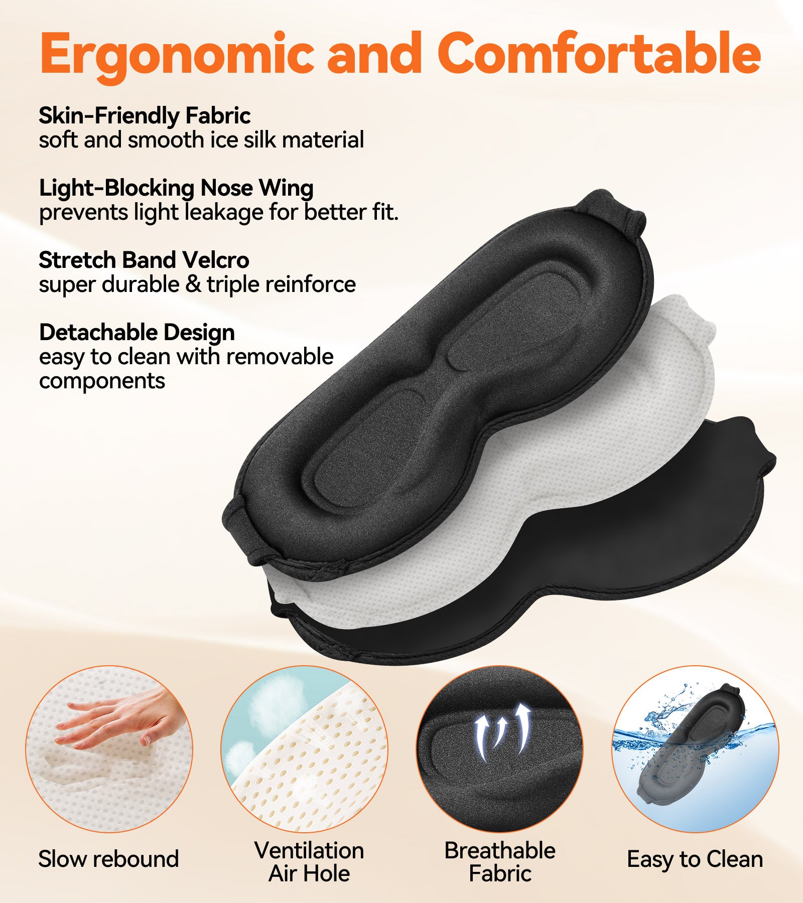 3D Contour Design for Eye and Lash Protection: Engineered with advanced 3D contours, this eye mask for sleep creates ample space around your eyes, preventing pressure on your eyelids or lashes. the 3D sleep mask is perfect for anyone using lash sleeping masks for lash extensions, ensuring no smudged makeup or discomfort