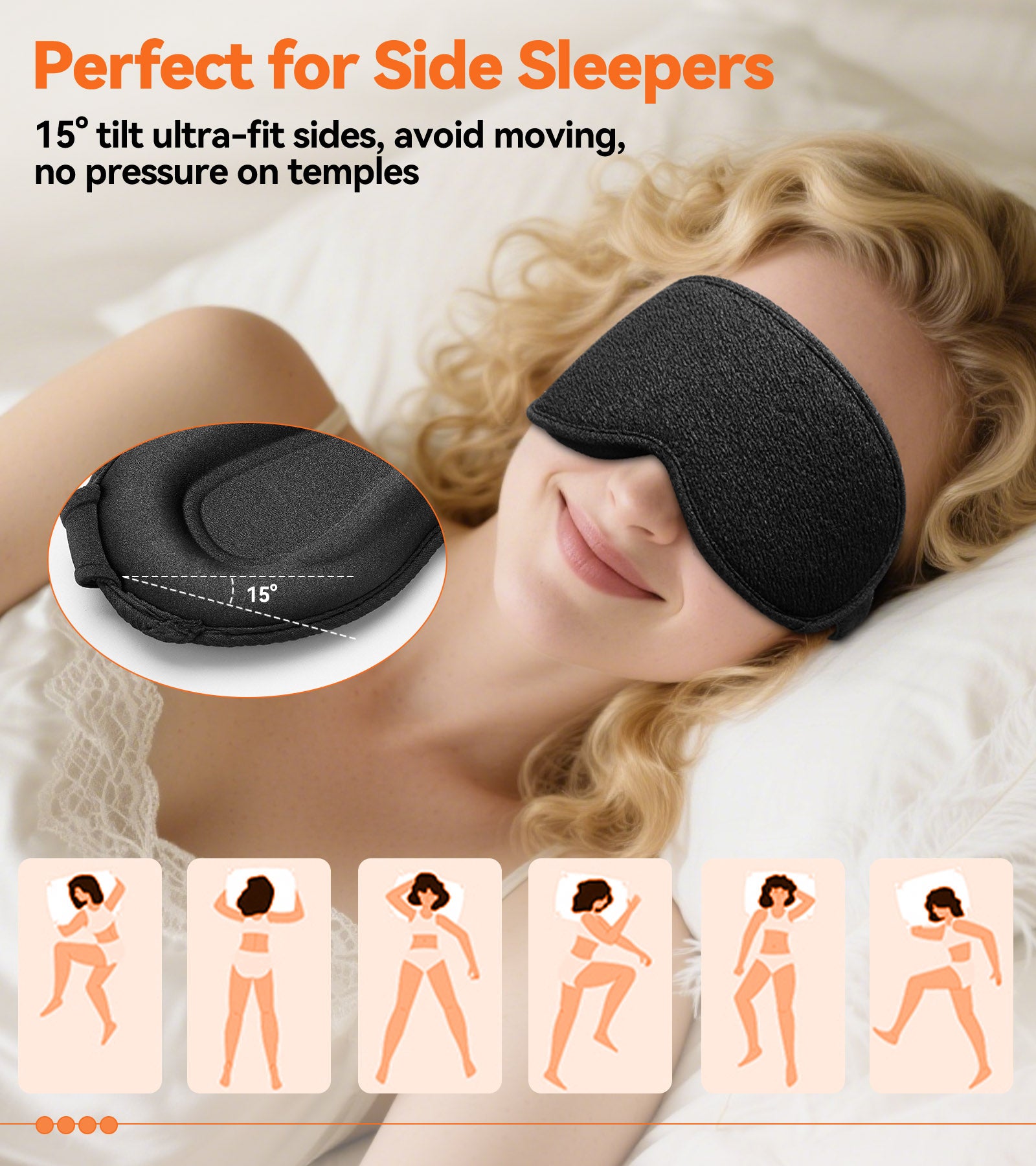 3D Contoured Sleep Mask - Innovative Anti-Freeze Memory Foam, Soft & Breathable Eye Mask, Machine Washable, Lightweight, Perfect Fit & Lash Protection for Deeper Sleep